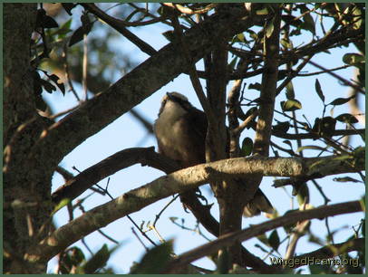 Babblers always move in close knit family groups, barely straying from each other. Ron was quite surprised to find this young bird perched in the tree, with no sign of any of his clan members around. The bird seemed quite happy, not scared, even hopped down for a bit and was friendly enough to be photograpahed. Certainly the bird seemed to know us.